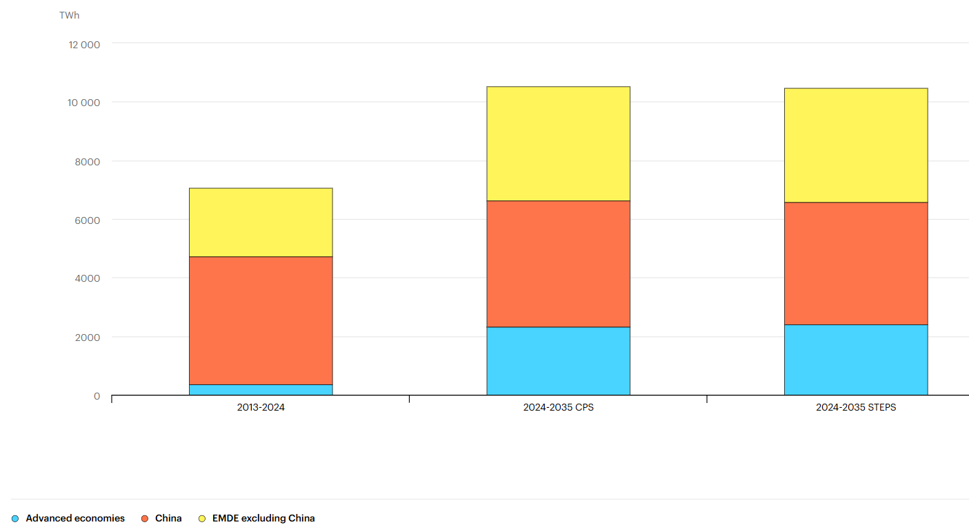 Il World Energy Outlook 2025 dell’Agenzia Internazionale dell’Energia (IEA) registra un sistema energetico mondiale in rapida evoluzione. La domanda globale è in continua crescita, trainata soprattutto da India, Sud-Est asiatico, Medio Oriente e Africa. L’espansione riguarda in particolare i servizi elettrici: entro il 2035 il fabbisogno di elettricità è destinato ad aumentare del 40%, spinto da mobilità elettrica, pompe di calore, industria avanzata, data center e applicazioni di intelligenza artificiale. La nuova mappa dell’energia vede il baricentro spostarsi verso economie giovani, in forte urbanizzazione e con condizioni ideali per lo sviluppo del fotovoltaico. Secondo l’IEA, entro il 2035 l’80% della crescita dei consumi energetici si concentrerà in aree con elevato irraggiamento solare.